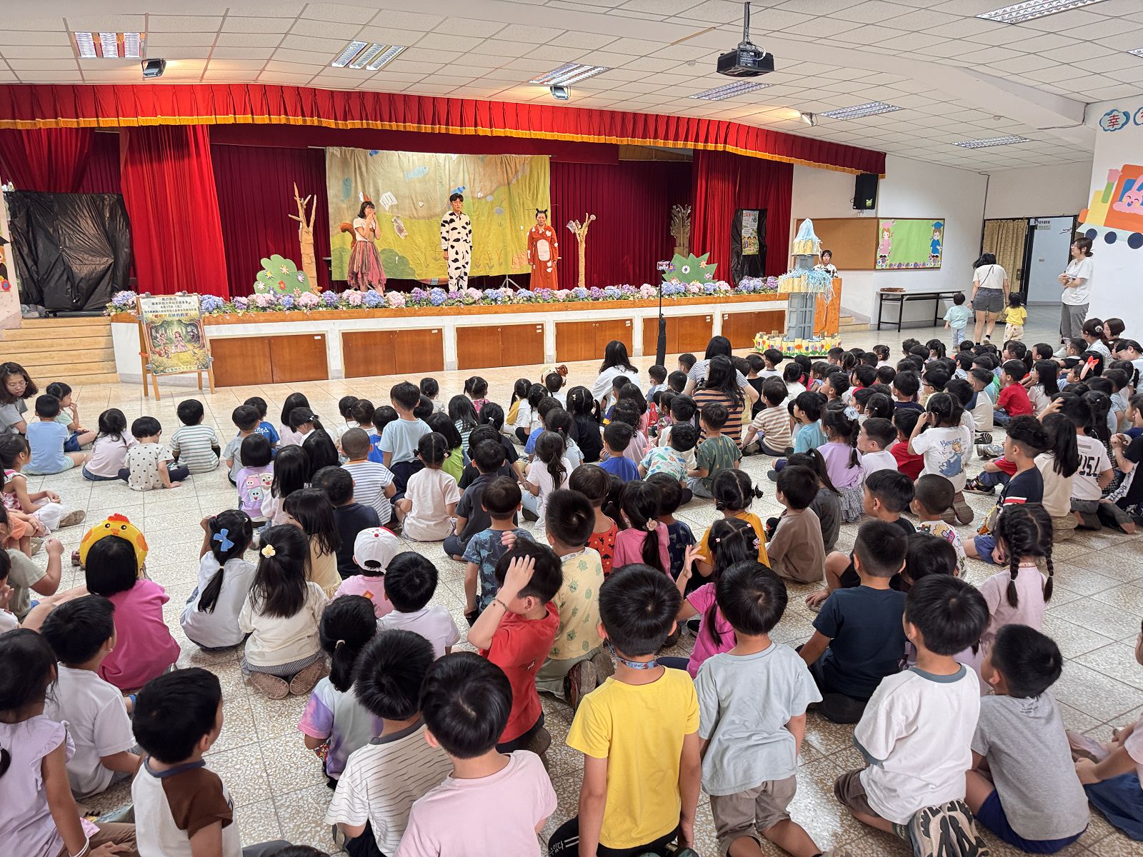 演出結束後,全場響起熱烈掌聲,孩子們用最直接的歡呼與笑容表達對演出的喜愛與感謝。隨後,師生們也把握機會,與參與演出的哥哥姐姐們一同合影留念。孩子們開心地站在演員身旁,有的模仿角色動作,有的露出燦爛笑容,為這段難忘的時光留下珍貴紀錄。山羌班幼生葉軒銘說:「我覺得今天表演好好看,也告訴我們不能亂丟垃圾,要愛護環境。」白鼻心班幼生李子悅說:「覺得表演的哥哥姐姐很厲害,表演很好看、很精彩。」瓢蟲班蔡丹桂老師說:「今天的兒童劇表演真的很精彩又有活力,看完還想看第二場。孩子們都看得非常投入,也從故事中學習到要愛護地球、一起做環保,是一場既好看又有意義的表演。」