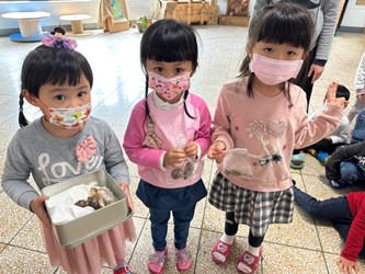 而全園的響應也非常熱烈,每天進校門都可以看到孩子提著一袋蝸牛殼,開開心心地前往山羊班兌換禮物。雖然偶爾會出現拿活體蝸牛來換的情形,變成隔天蝸牛爬出箱子在教室遊蕩的情形,讓山羊班的師生上演捕捉的狀況、哭笑不得。不過即使如此,大家還是很開心且不厭其煩地說明宣導,除了仔細整理、分類每一種蝸牛殼,並將活的蝸牛野放大自然,真心享受這樣的收集蝸牛殼活動。