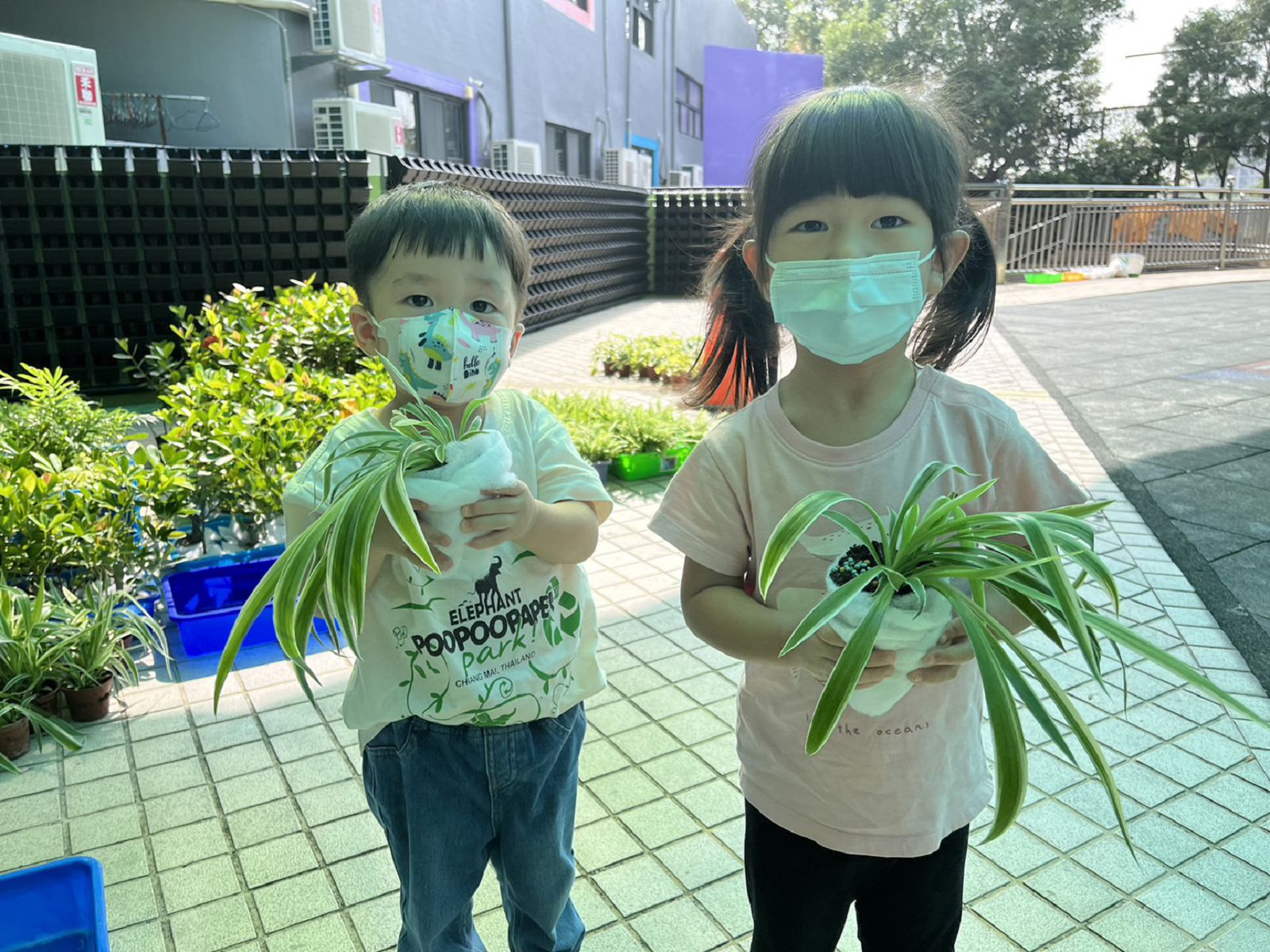 完成後的盆栽高達500多盆,而且經過廠商專業師傅排列後,整體感覺更是非常賞心悅目。水獺班幼生施詠婕說:「我有小心把植物拉出來,再幫它穿上漂亮的裙子保護好。」松鼠班幼生柯雅薰說:「希望看到我們的牆變漂亮,長很多綠色植物。」瓢蟲班郭美娟老師說:「瓢蟲寶貝有了上次種植觀葉植物的經驗,這次寶貝們都不怕泥土黑黑髒髒的,而且也能自己動手將植栽取下,真的好棒!」獨角仙班劉珮琪老師說:「小獨角仙參與學校美植牆活動,一開始寶貝們就好奇的觸摸,聆聽老師的指令幫忙用小手壓壓盆栽,進行鬆土移盆,這次的活動讓小獨角仙有了近距離觀察植物的經驗,期待看到美麗的美植牆喔!」