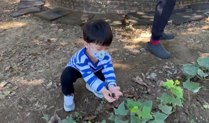 首先兩班師生先到花園旁,先觀察花園狀態。為濕的環境與剩餘菜葉,正式牠們最喜歡的環境。老師開始將蚯蚓一隻隻放到大家的手中,讓孩子們一一輕輕溫柔地放在土壤上,並且安靜觀察。不一會兒,原本安靜不動的蚯蚓,開始扭動身體往土裡鑽,看似很長的蚯蚓,結果不用一分鐘就完全隱身到土壤裡了,孩子們都覺得很神奇,而且興致更高,大家都想要放更多的蚯蚓來幫忙鬆土。