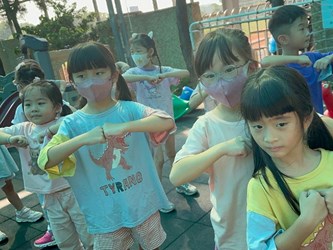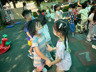 和好朋友牽手轉圈圈