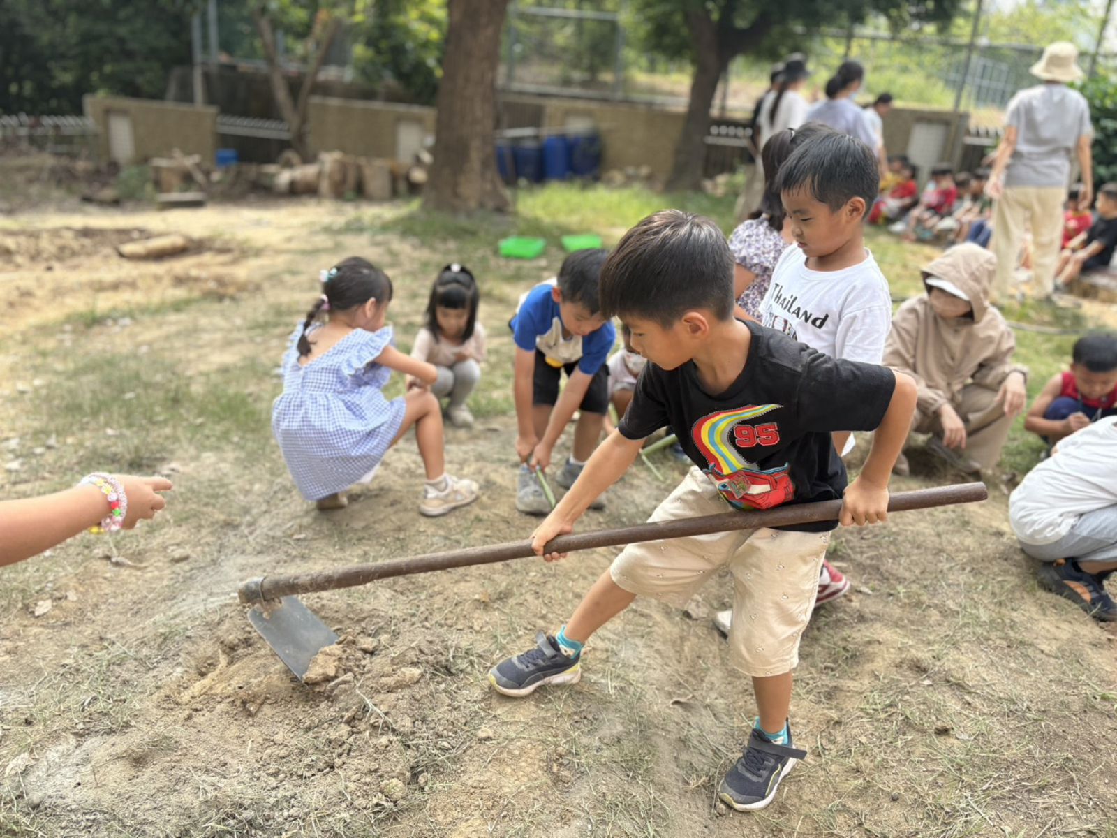 整理菜圃拿鋤頭
