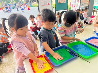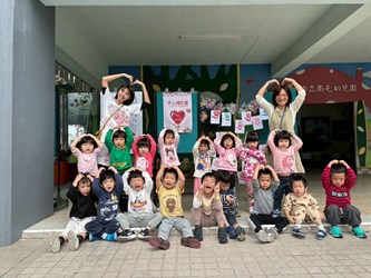 劉珮琪老師說:「十一月感恩節的到來,樹蛙班的孩子們展開了一段溫馨的學習旅程—學會感謝身邊的人與事。感恩,不僅僅是一句「謝謝」,更是一種把愛傳遞出去的行動。為了引導孩子們將感恩化為具體的表達,樹蛙班特別舉辦了「愛無限大」愛心手作掛飾創作。作品中,孩子們用繽紛的色彩與純真的心意,呈現出最真摯的情感。這股感恩的力量也在校園中延續,走向聖誕節的「愛的聖誕樹」活動。討論中,孩子們決定收集全校的手掌印,串起大家「手心裡的愛」。在蓋手掌印的過程裡,小樹蛙們分工合作:有人幫忙塗顏料,有人貼上愛心,有人唱歌助興……在歡笑與互動中,任務一一完成。最後,樹蛙班將所有手印匯聚成一棵聖誕樹。它不再只是節日的裝飾,而是一棵充滿溫暖與感謝的「愛之樹」。這棵樹承載著孩子們對老師的感謝、對同學的關心、對家人的愛,以及對生活中每一份幸福的珍惜。透過這次活動,孩子們不僅完成了一件作品,更在心中種下了感恩的種子,讓愛與祝福在校園裡持續生長、綻放。」