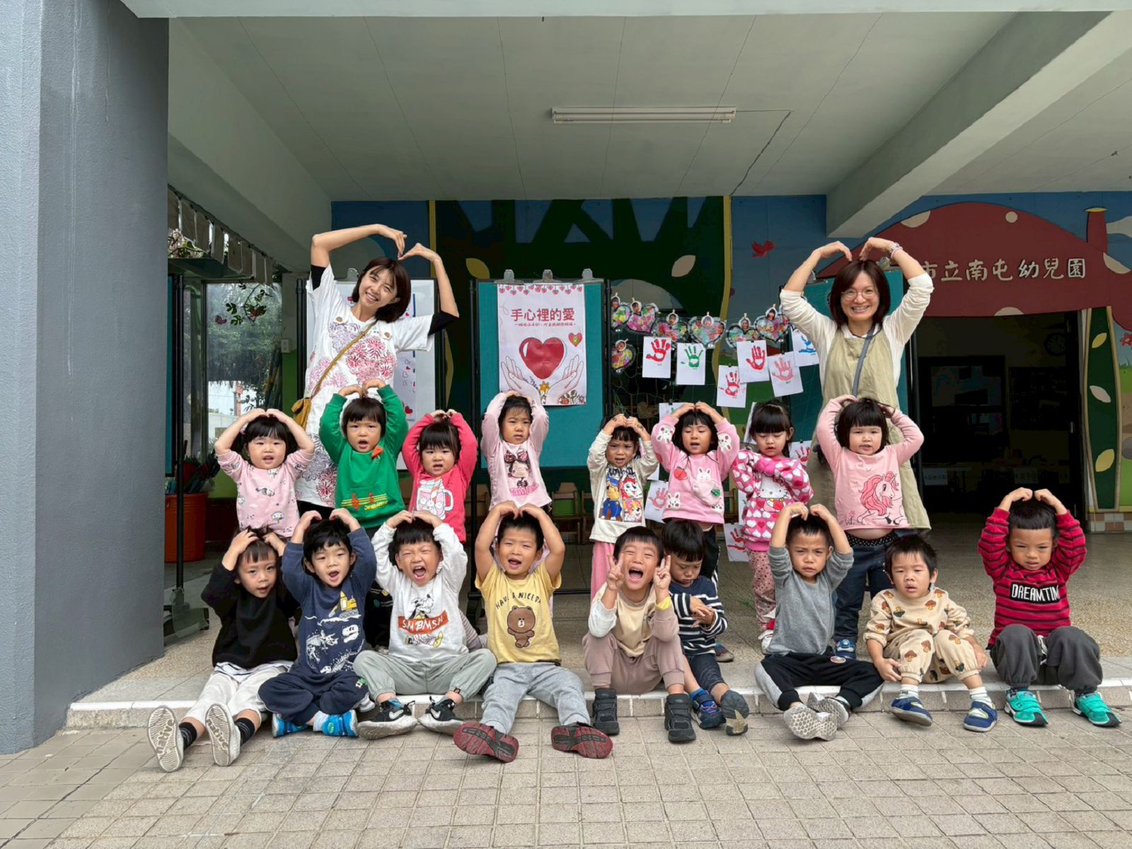 活動仍在熱烈進行中,不少班級陸續加入響應,大家也非常期待最後呈現、由全園手印凝聚而成的成果。幼生李欣霏說:「我蓋紅色的手掌,我愛大家。」幼生柯念成則分享:「謝謝大家來蓋手印,我好開心。」劉彥麟老師說:「這學期主題「YES!我可以」,不只是陪伴孩子練習生活自理能力,在即將到來的歡樂聖誕月裡,我們更希望孩子能學會把愛說出來、把感謝表達出來。樹蛙班這次「愛的聖誕樹」的初心,就是「感謝」。我們邀請全園一起參與,用一個個繽紛的手掌印串起「手心裡的愛」,也連結對身邊每一位愛我們的人的真摯謝意。這次為期三天的「手心裡的愛」蓋手掌印活動,因為全園班級眾多,活動時間拉得比較長,負責小任務的小樹蛙們偶爾會出現調皮可愛的小狀況,但這些過程中的點點滴滴,正是樹蛙班最獨一無二的共同回憶。這個活動很感謝南屯幼兒園所有夥伴願意陪著孩子們,一起完成這棵充滿愛的聖誕樹,愛你們呦!「愛的聖誕樹」即將在校園中溫暖登場…。」