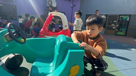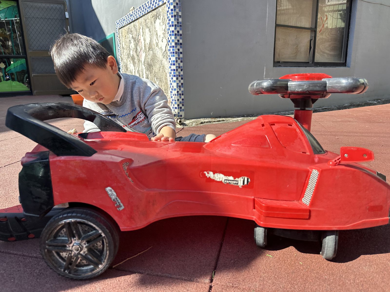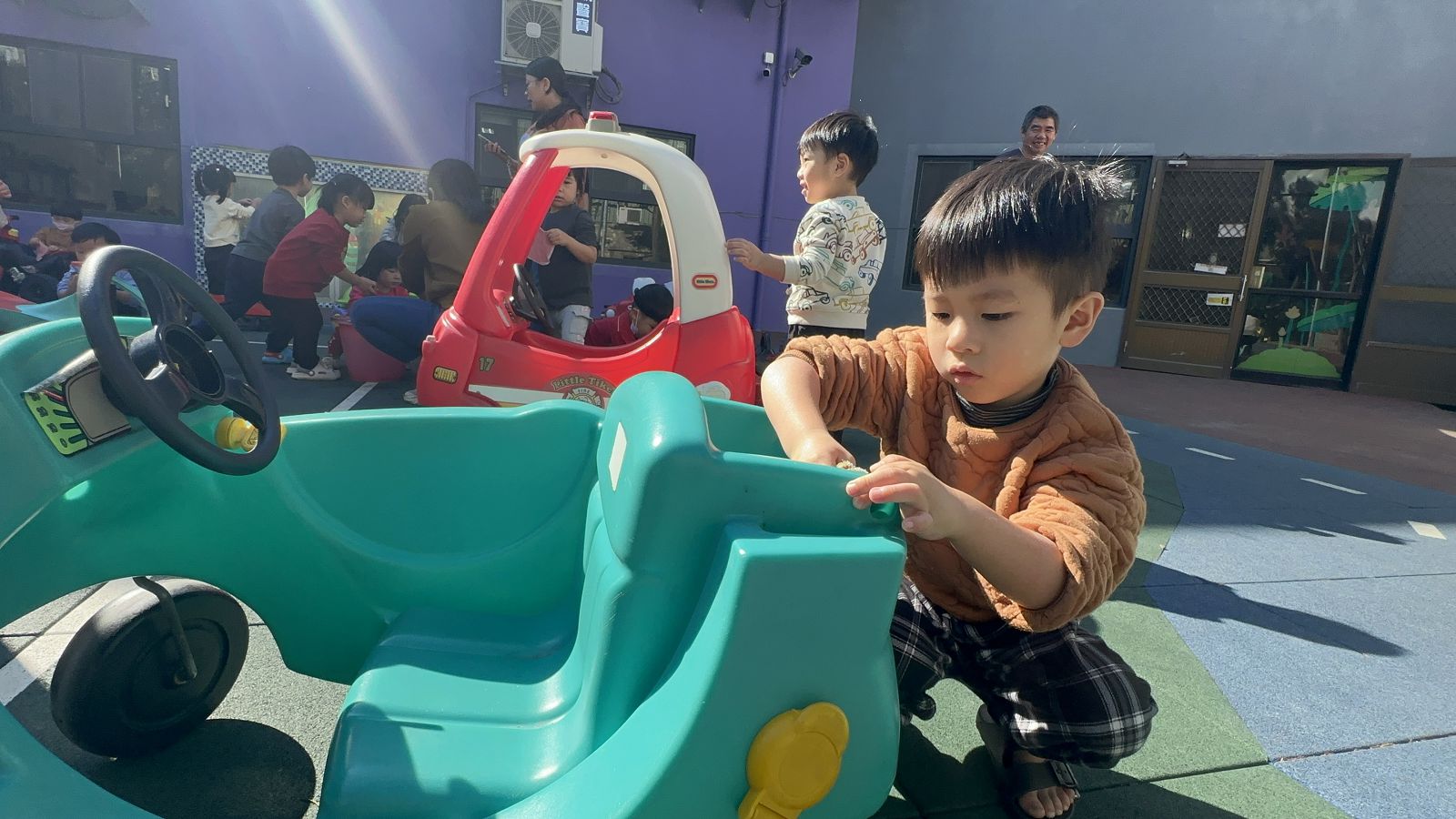 其實,出學校任務對小班群來說並不多見,對水獺班的孩子而言,更是第一次接下任務,因此大家顯得格外興奮,也專注地聆聽園長說明。這次的任務主要是將原本放置在室內的遊具與腳踏車,重新搬回室內並排好定位。不過,在搬運之前,由於遊具與腳踏車因聖誕燈會而在戶外放置了一段時間,經過幾天的風吹日曬,上頭沾滿了不少沙子與灰塵,因此必須先擦拭乾淨,才能移動進室內。於是,在正式開始工作前,孩子們先進行擦拭特訓,學習正確的擦拭動作與順序、換水的時機,以及擰乾抹布的小技巧;等一切準備就緒後,大家便精神抖擻地展開任務。