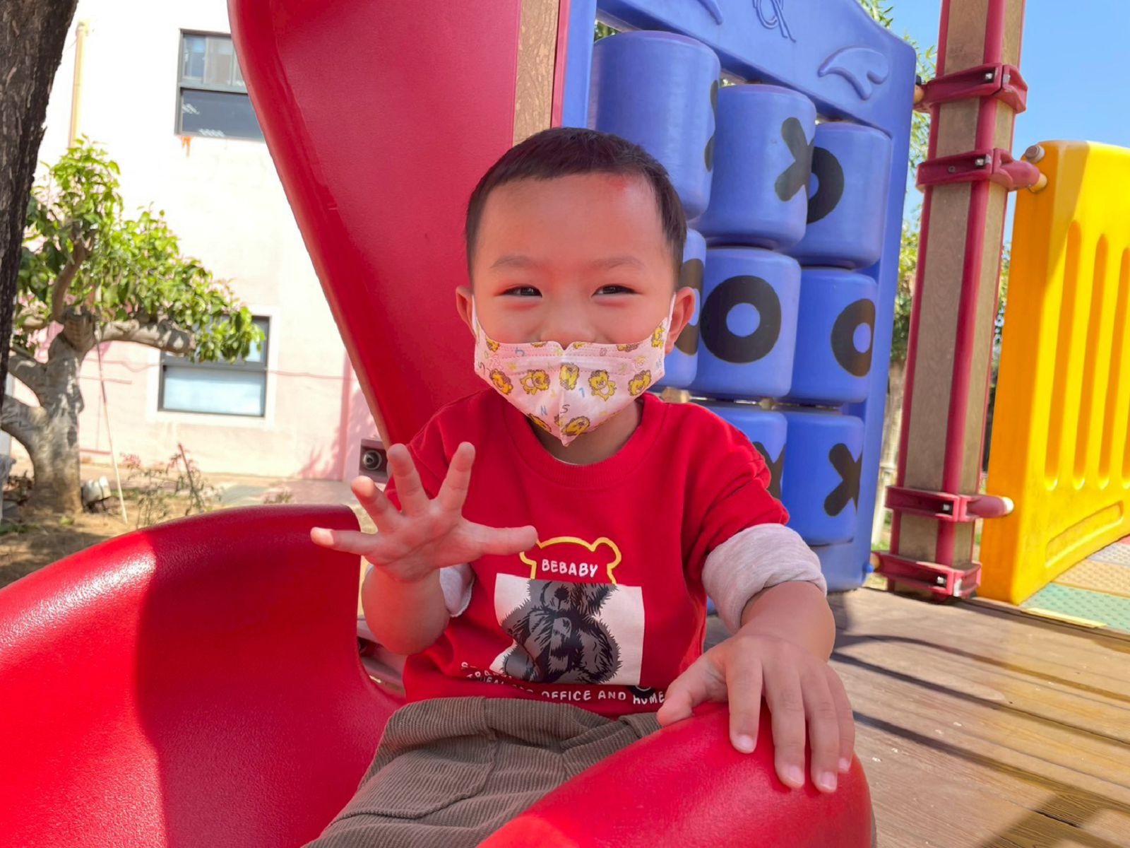 開心的玩溜滑梯
