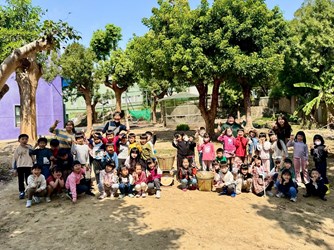 南屯幼兒園山羌班與梅花鹿班種植了一個多學期的地瓜,終於等到收成的時刻。兩班的孩子們都格外期待與興奮,早早就準備好要來挖出埋在地底的地瓜,見證今年是不是依然能夠大豐收。於是大家帶著挖土的鏟子工具,一起集合在地瓜田旁,準備大展身手。