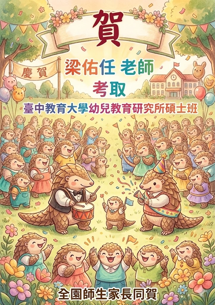 賀! 梁佑任老師考取 臺中教育大學幼兒教育研究所碩士班