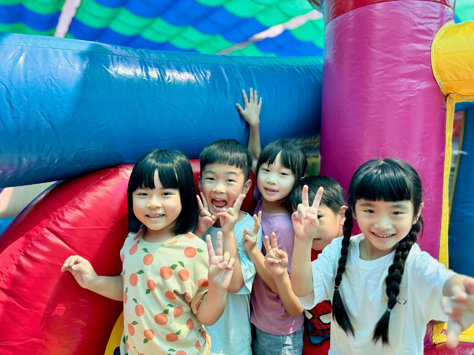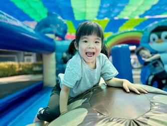 一輪玩下來,孩子們個個玩得滿臉通紅、汗流浹背,但臉上全是掩不住的燦爛笑容與開懷笑聲,直呼今天的充氣樂園實在太好玩了!梅花鹿班幼生梁里齊開心地說:「我最喜歡小小兵溜滑梯,我姿勢很正確,所以可以溜得很快!」白鼻心班幼生饒芷妍也分享:「我喜歡企鵝跟海龜,可以一直蹦蹦跳跳,真的很好玩!」