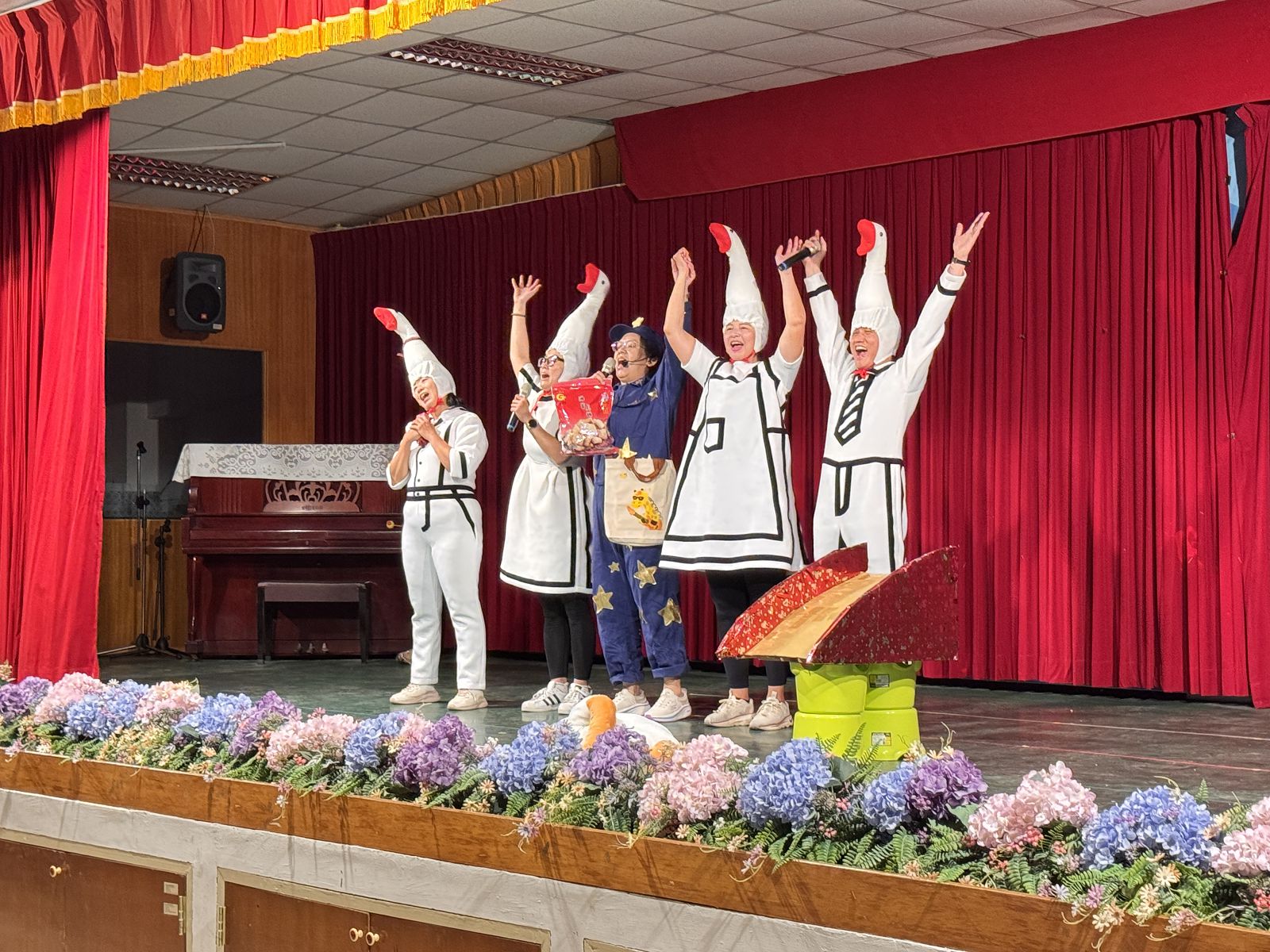 劇中,因為天真活潑的四隻鵝常被誤解是調皮搗蛋,不僅讓人傷透腦筋,甚至生氣萬分。後來透過瞭解,知道鵝是希望能跟人作朋友,僅是不懂方法。透過角色間的互動,孩子們看見了不一樣的樣貌,也慢慢理解到,每個人都有自己的步調與特質。有時候,那些看似困難或奇怪的行為,其實只是另一種需要被理解的表達方式。志工家長們用誇張卻不失細膩的肢體動作、富有節奏感的對話,以及穿插其中的音樂與笑聲,成功吸引了全場孩子的目光。孩子們時而哈哈大笑,時而靜靜凝視,隨著劇情起伏而投入其中。當劇中角色因誤解而產生衝突時,現場氣氛也跟著緊張;當彼此釋懷、伸出友誼之手時,孩子們則露出安心而溫暖的笑容。這些不僅讓孩子們看見合作與尊重的力量,也讓現場的師生們深受觸動。