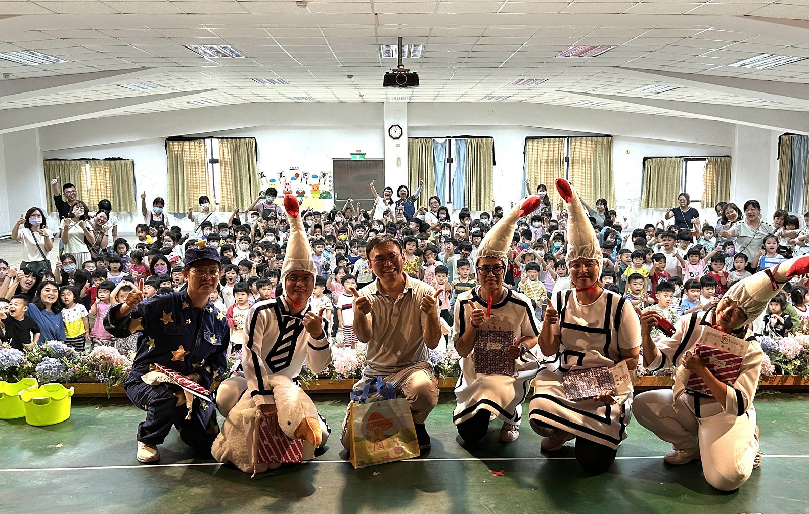 在今天陰雨綿綿的早晨,南屯幼兒園卻格外顯得溫暖溫馨。因為今天不只是孩子的兒童節頒獎典禮,校園裡悄悄醞釀著一場別具意義的相遇,一場由滿懷愛心與熱情投入的家長,用心編織兒童劇「鵝!你是誰?」的戲劇饗宴。地點就在熟悉的三樓大禮堂,卻因為一群熱情投入的家長與師生,而顯得格外不凡。