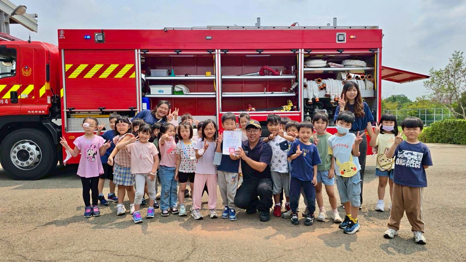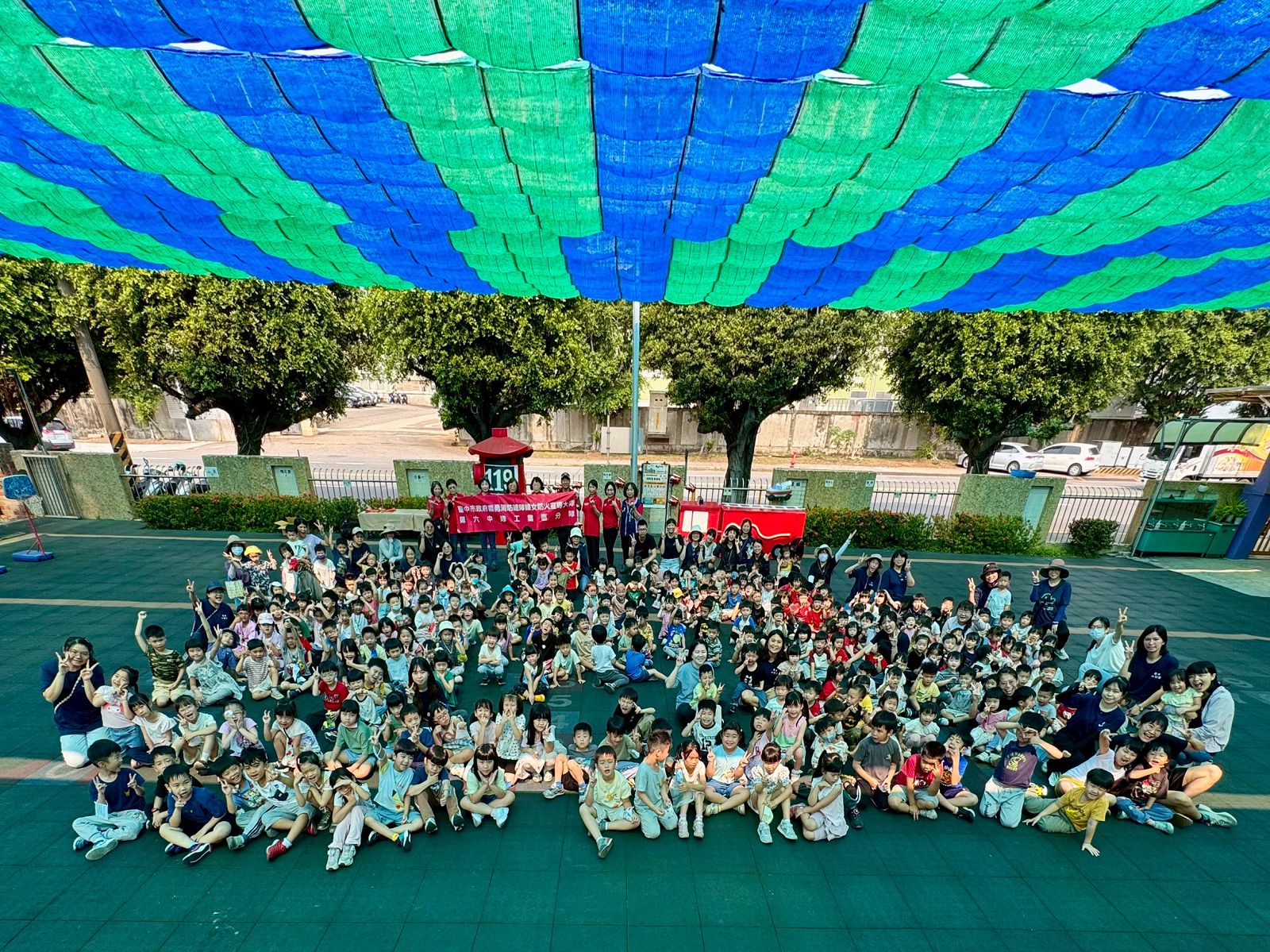 負責策劃活動的蕭心慈保育組長說:「這次我們再次和工業區消防分隊合作,辦理幼兒園的消防宣導活動。活動前用各種材料打造了一台超吸睛的大型消防車,真的很有成就感,也很感謝各方的支援,讓作品順利完成、成為活動現場的亮點。在婦宣教官和消防員的帶領下,孩子們透過闖關和遊戲的方式學習安全知識,像是認識消防設備、練習基本的防災動作等。雖然天氣有點炎熱,但完全不影響孩子們的熱情,每一關都玩得很投入,現場氣氛熱絡。孩子們在輕鬆的氛圍中學到重要的安全觀念,也加深了對消防工作的認識,再次感謝一切順利,讓活動圓滿結束。」陳議濃園長表示:「本次消防安全活動非常圓滿成功。透過這場寓教於樂的體驗,孩子們不僅認識了消防工作的內容,更學會了重要的防火與逃生知識。相信這些寶貴的經驗,將成為他們成長過程中重要的一部分,也為安全意識的建立打下穩固的基礎。」